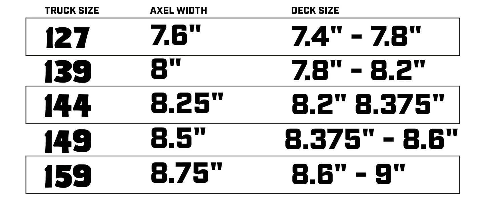 - 159 - 8.75" Axel / 8.6" - 9" Deck